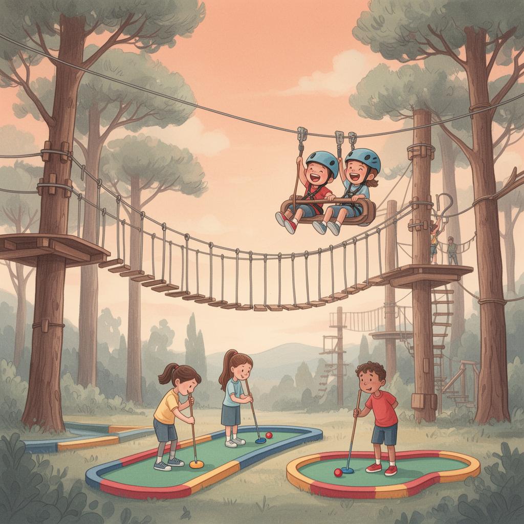 A 5,000m² outdoor adventure park at City of Dreams Mediterranean with a zipline coaster, two-level high ropes course, family ropes, climbing wall, an 18-hole mini golf and a shipwreck-themed kids' playground — sold as tiered day passes so you can match the ride mix to your kids' height and nerve.